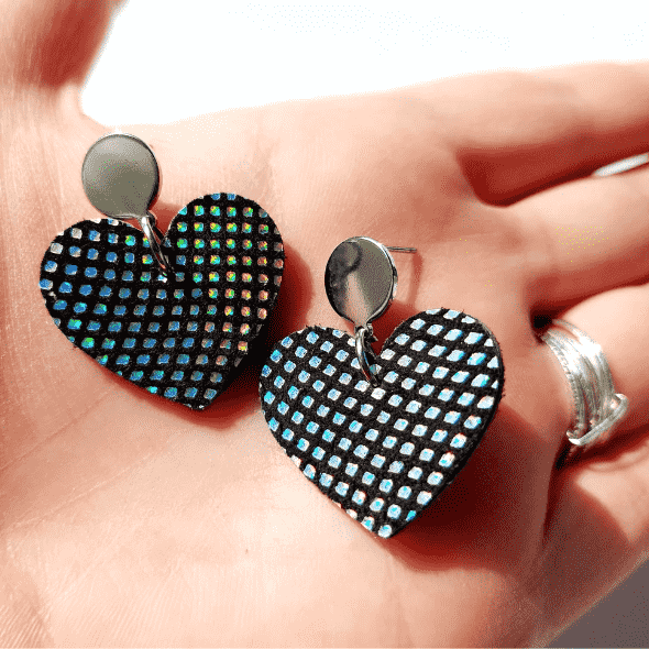 Boucles d’oreilles cœur en cuir argenté – quand l’amour rencontre le disco ✨💃