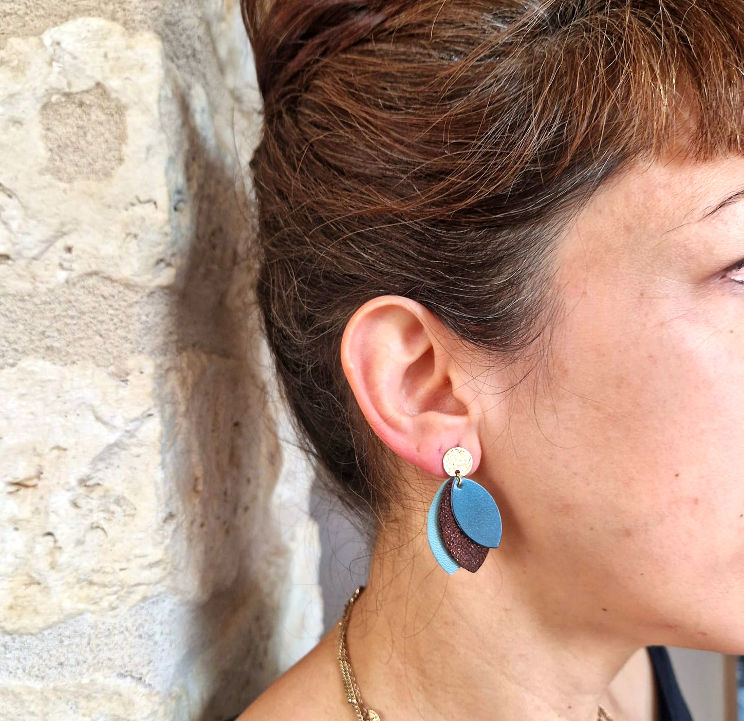 Vous cherchez un bijou harmonieux et délicat? Ces boucles d’oreilles déclinées dans un camaïeu de cuir bleu sont de vraies pépites pour donner de la couleur à votre tenue.