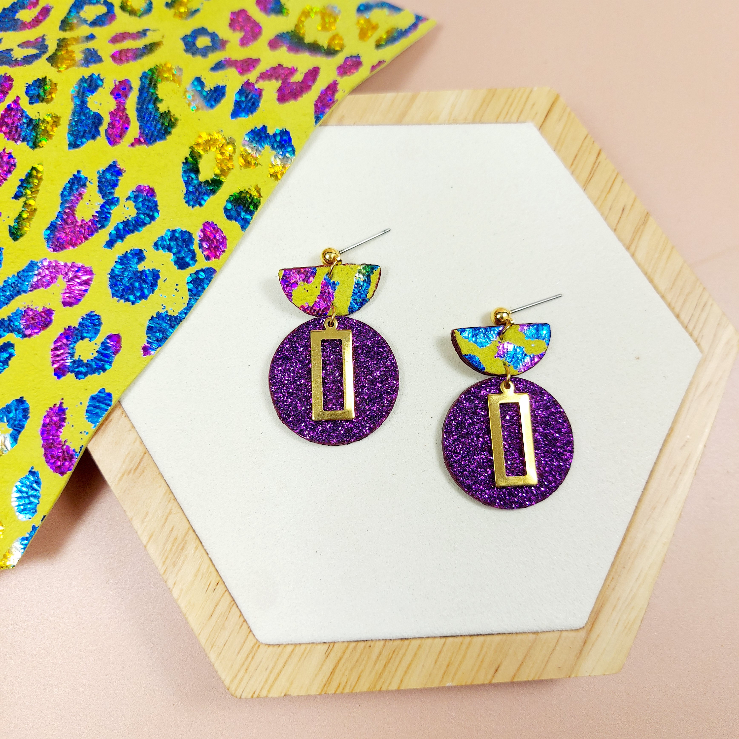 Réhaussez votre style et faites un choix responsable avec ces boucles d'oreilles vibrantes et colorées en cuir pailleté. Ajoutez-les dès maintenant à votre panier, elles seront à vos oreilles dans quelques jours.
