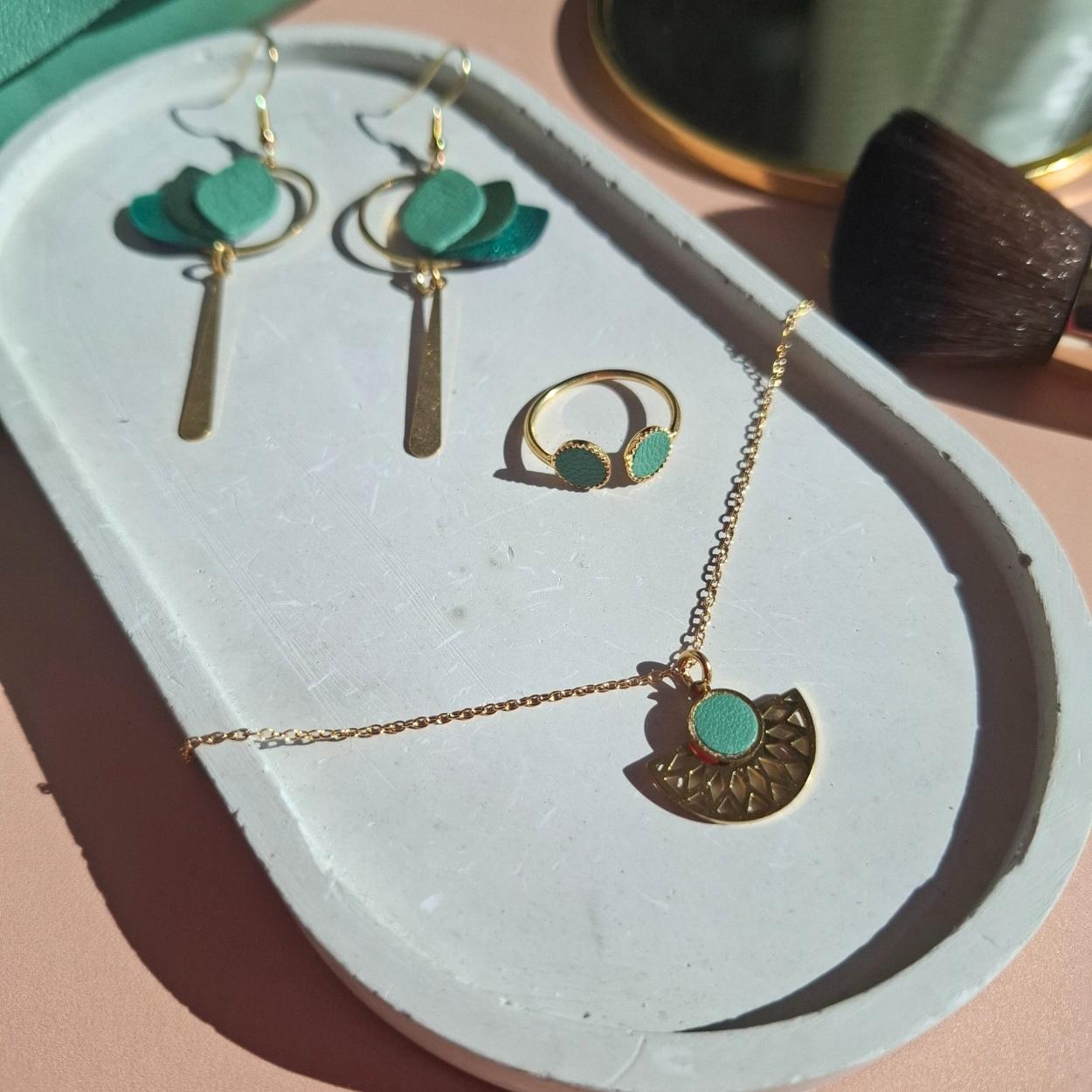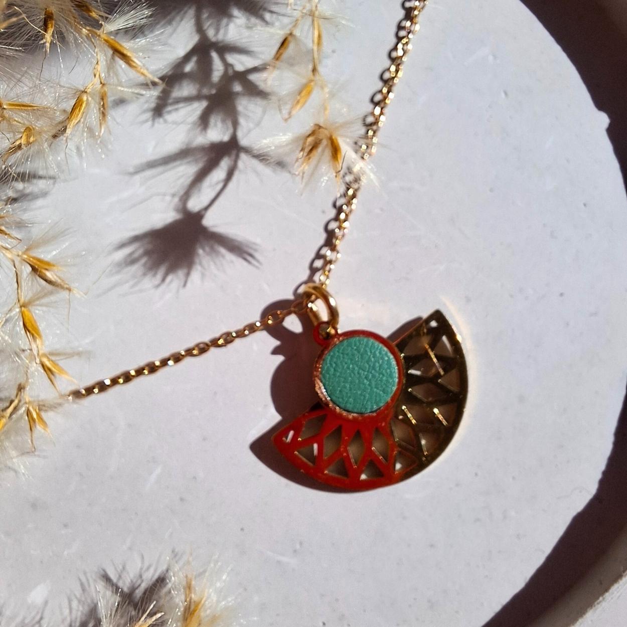 Ce collier minimaliste joue sur l’équilibre parfait entre discrétion et élégance. Son pendentif orné de ce magnifique cuir vert sauge, disponible en plusieurs coloris, capte subtilement la lumière, tandis que sa fine chaîne en acier inoxydable doré apporte une touche de sophistication naturelle.