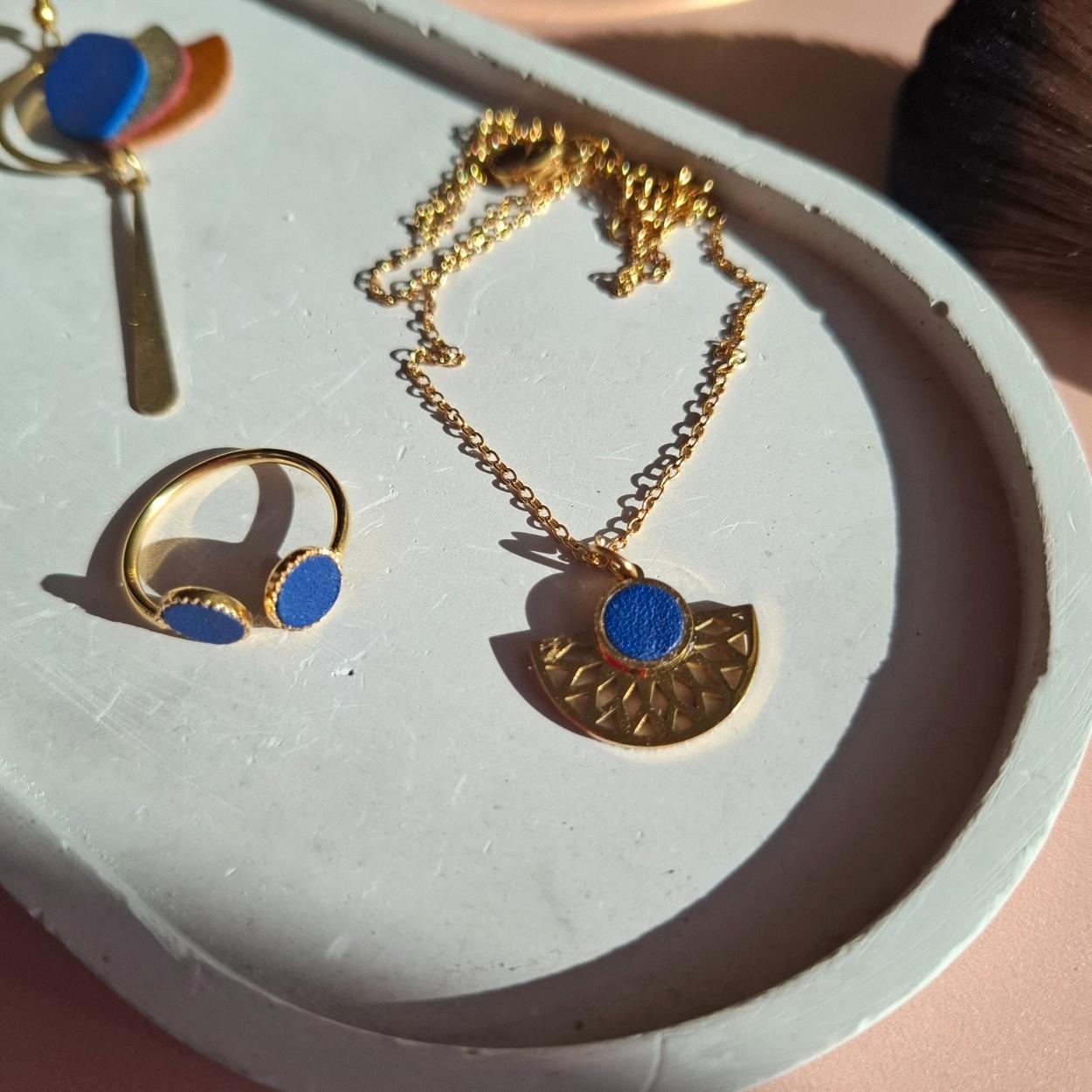 Soyez le premier à laisser votre avis sur “Collier femme cuir bleu upcyclé”