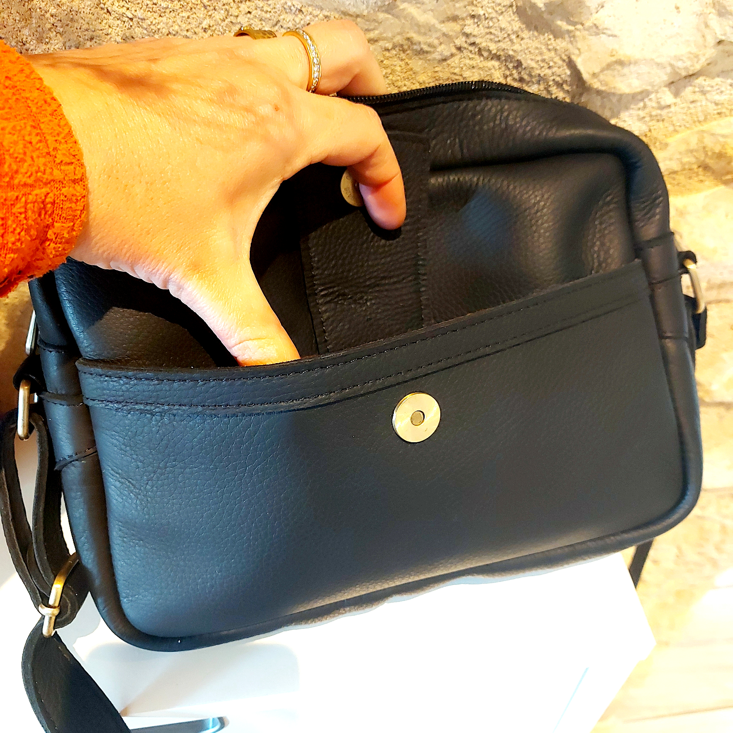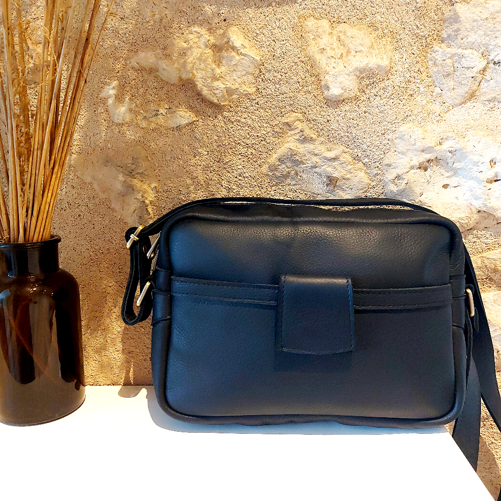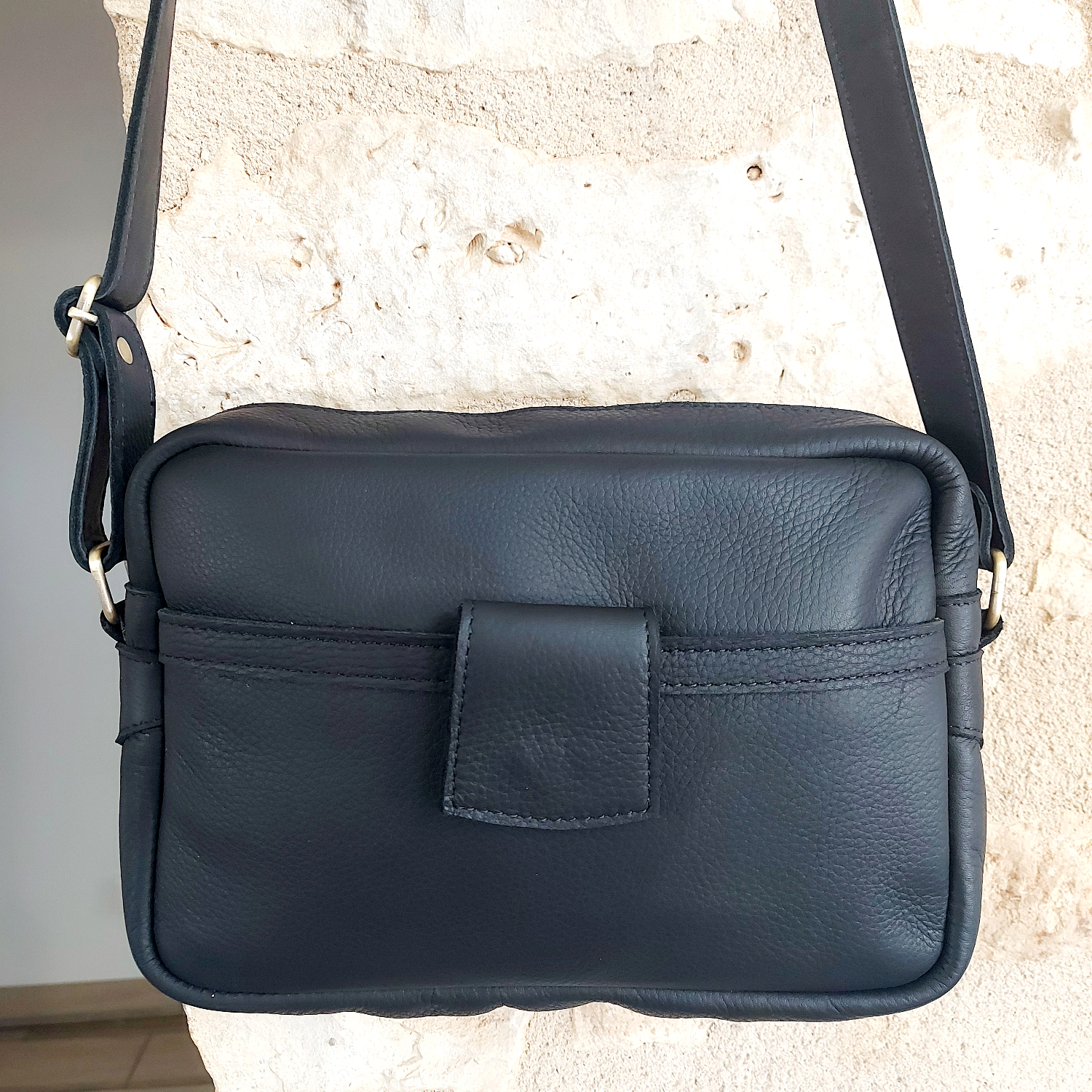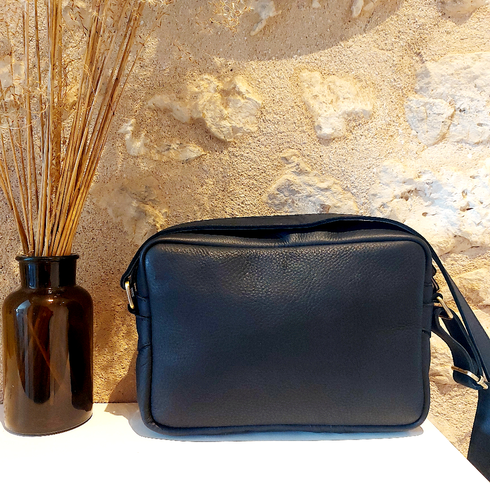 Sac artisanal en cuir noir grainé, conçu pour la femme qui recherche à la fois fonctionnalité et élégance. Que vous ayez un style décontracté ou ultra-chic, ce sac trotteur est l'accessoire parfait pour garder vos effets personnels près de vous, toujours accessibles et en sécurité.