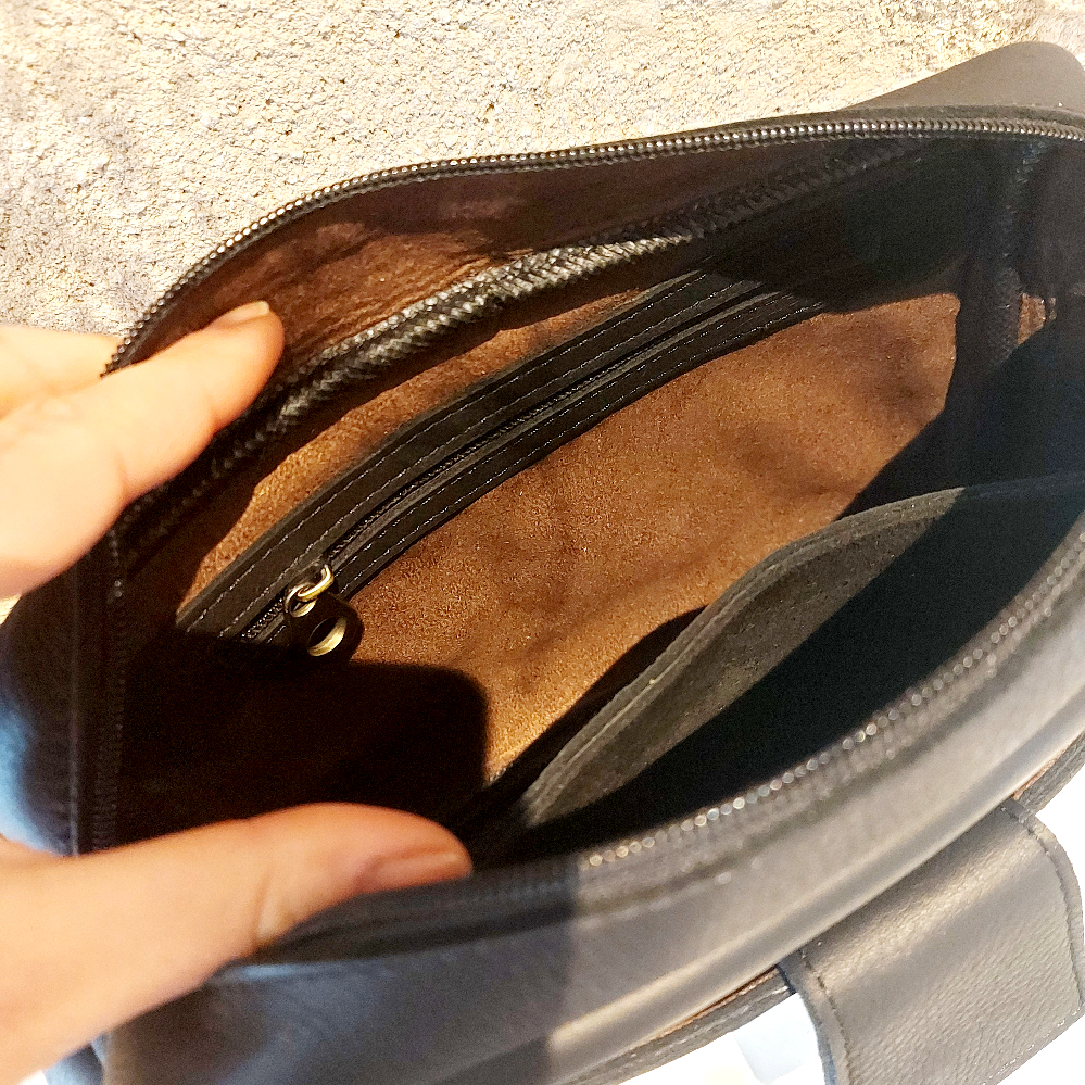 - Nombre de compartiments distincts : 4 (Compartiment téléphone + grand espace intérieur agrémenté de deux poches distinctes dont une zippée)