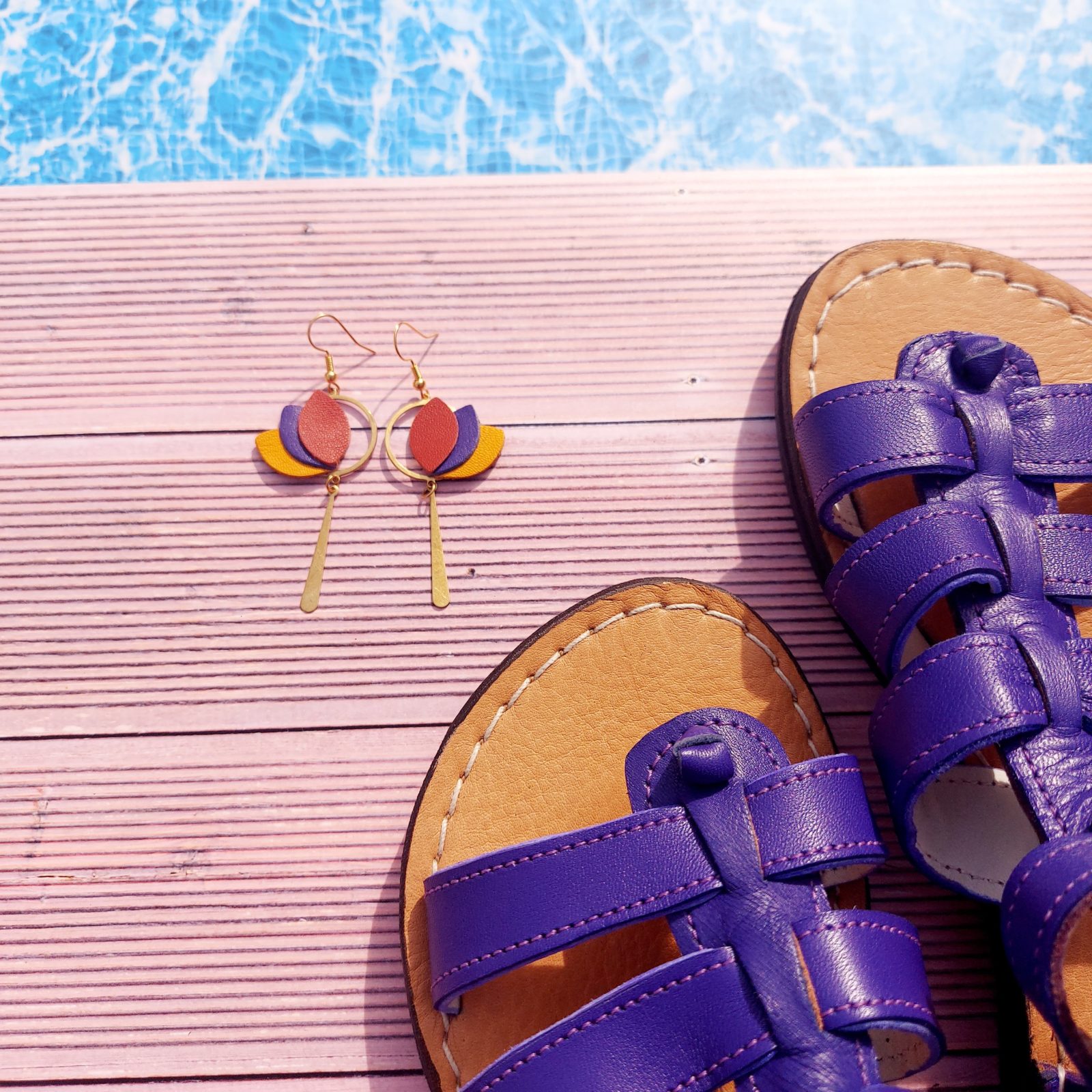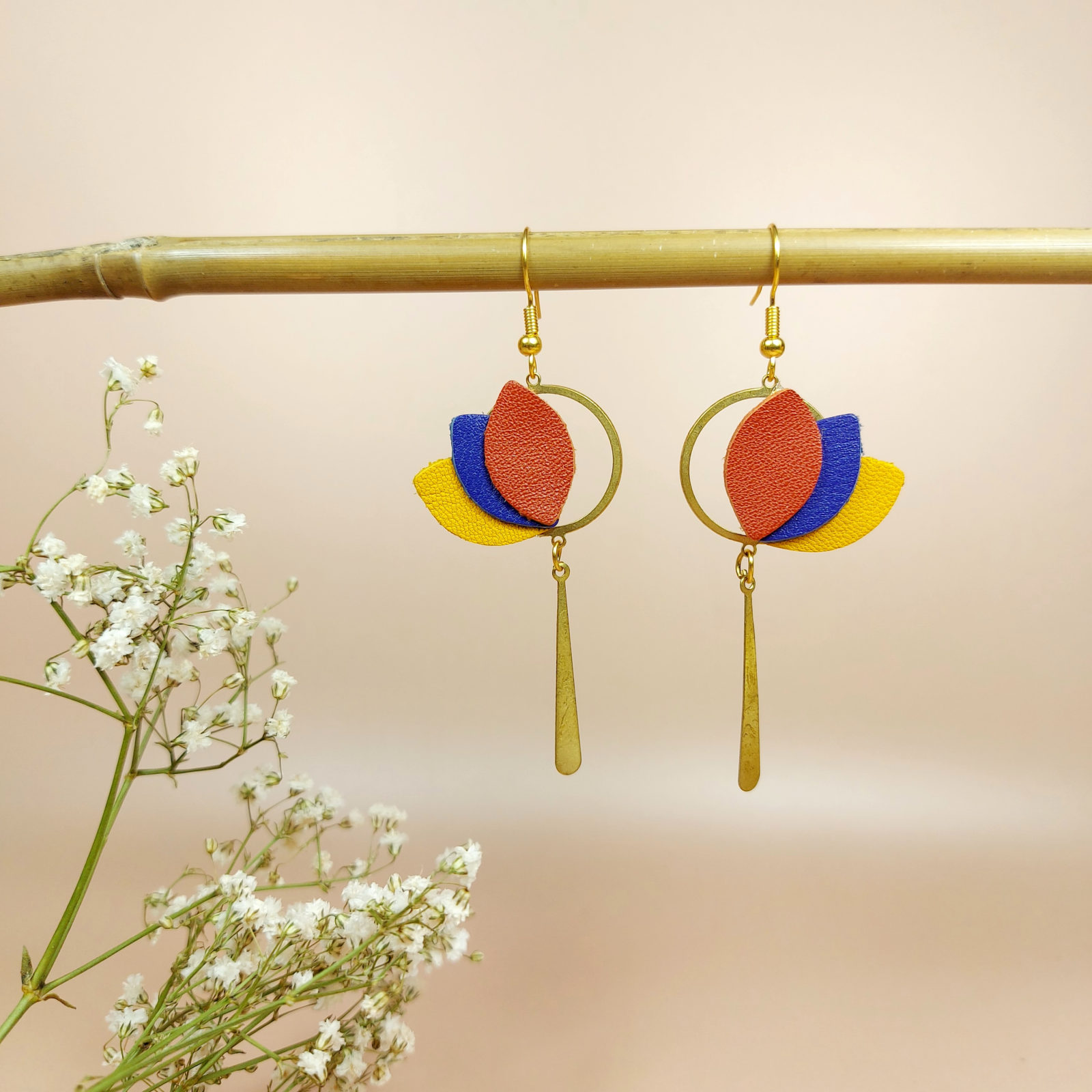 Mettez de la couleur dans votre vie ! Ces boucles d’oreilles colorées en cuir viendront égayer vos tenues en été comme en hiver. Fabrication française. Démarche écoresponsable.