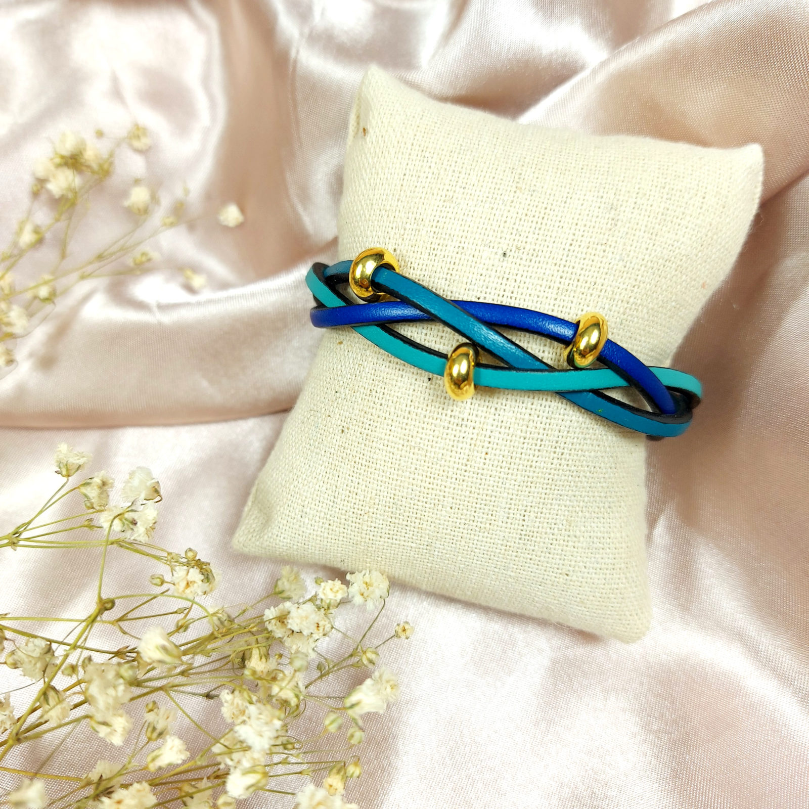 Ajoutez une touche de couleur à votre tenue avec ce bracelet en cuir 3 brins, fait main en France. Léger, ajustable, durable – un bijou artisanal qui booste le quotidien.