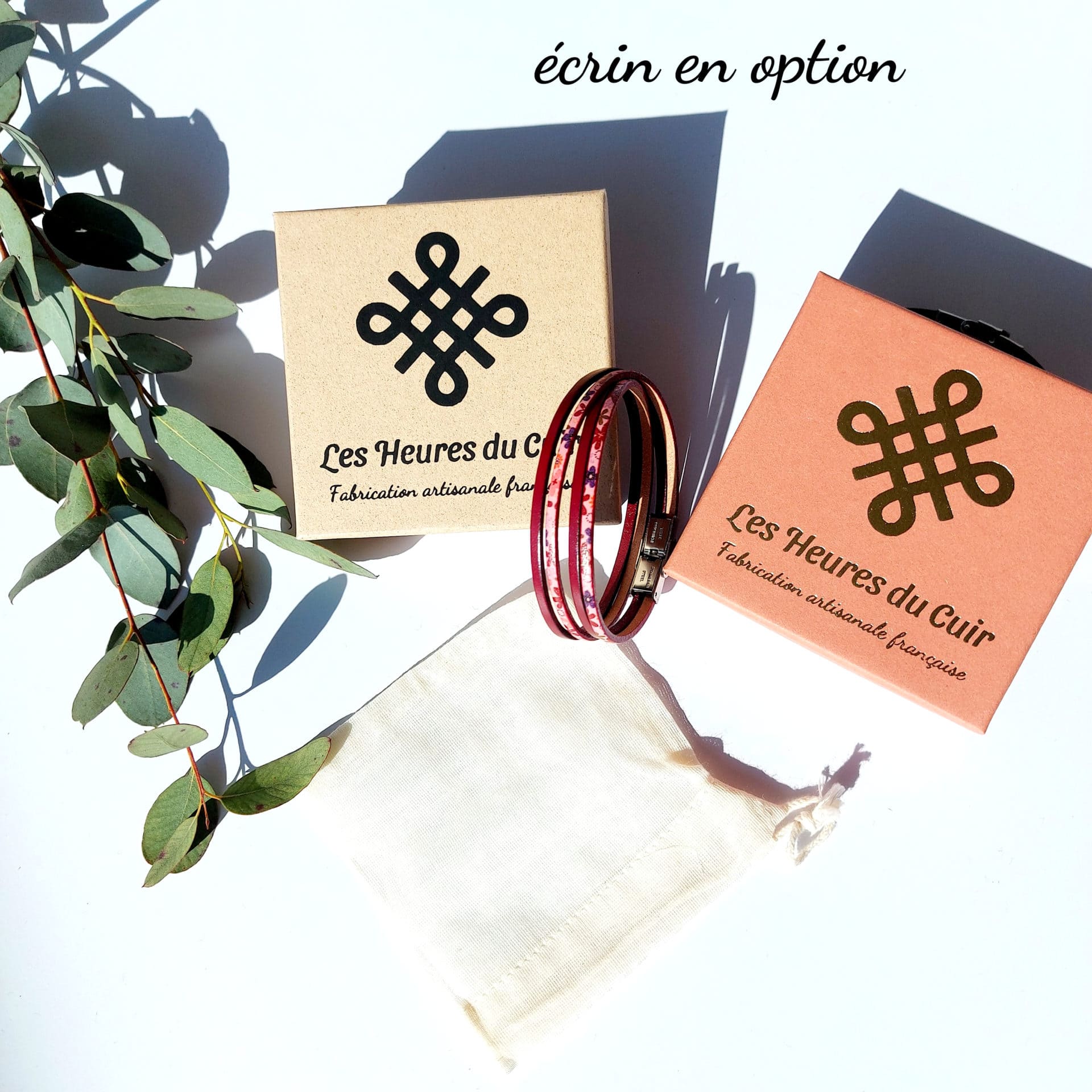 Bien sûr ! Choisissez l’option “emballage cadeau” et le bracelet arrivera dans un bel écrin éco-certifié, estampillé Les Heures du Cuir. Parfait pour faire (ou se faire) plaisir 🎁.