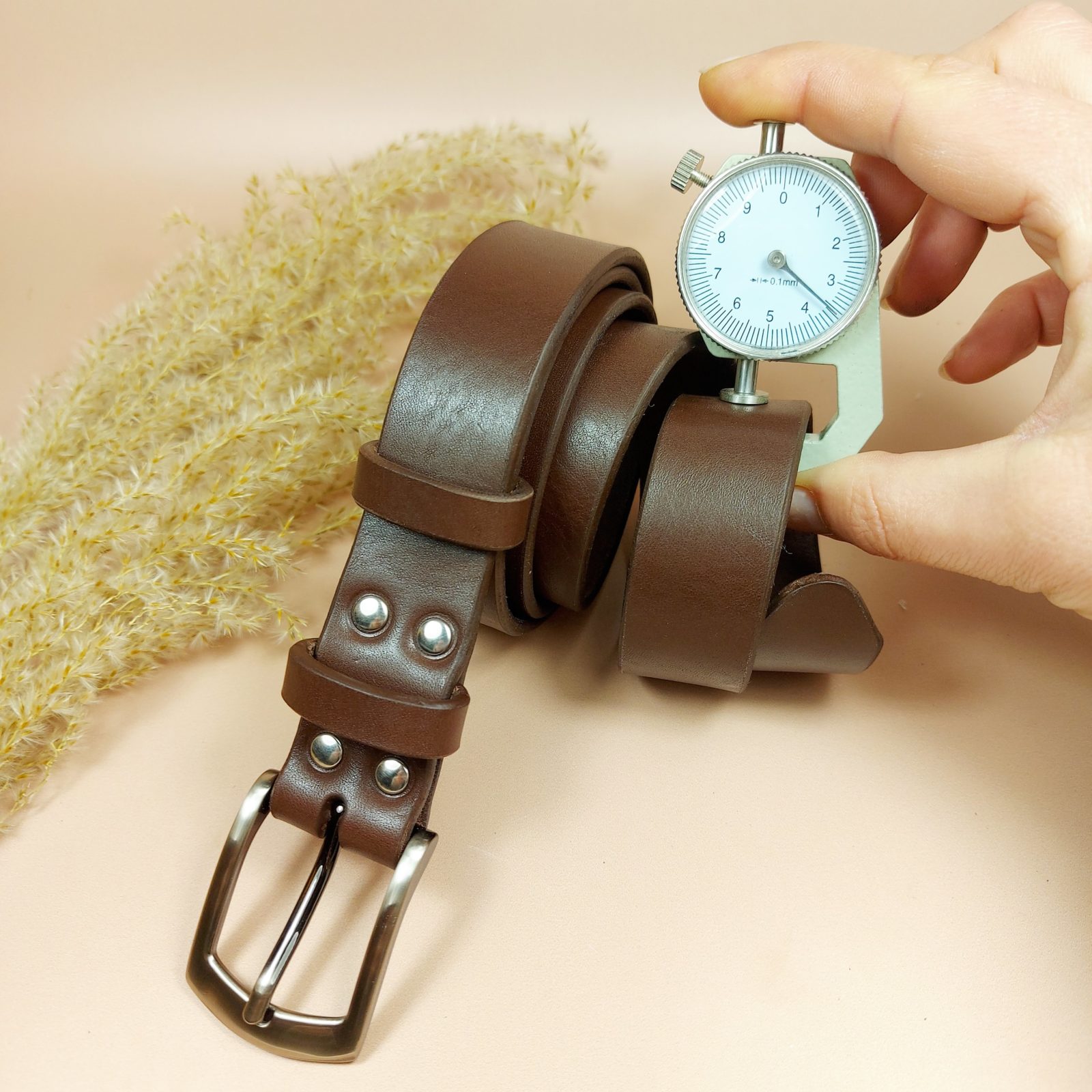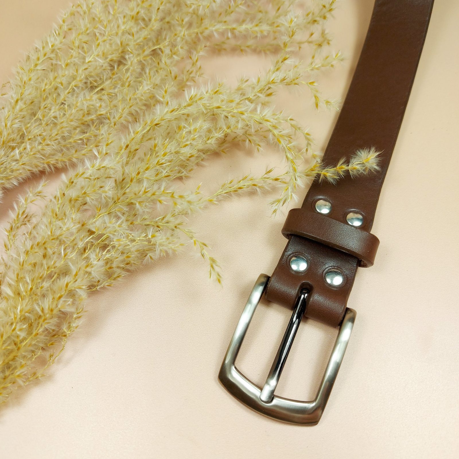 Ceinture artisanale en cuir marron lisse, réalisée sur-mesure. Pour les hommes et les femmes qui souhaitent consommer durable et local.