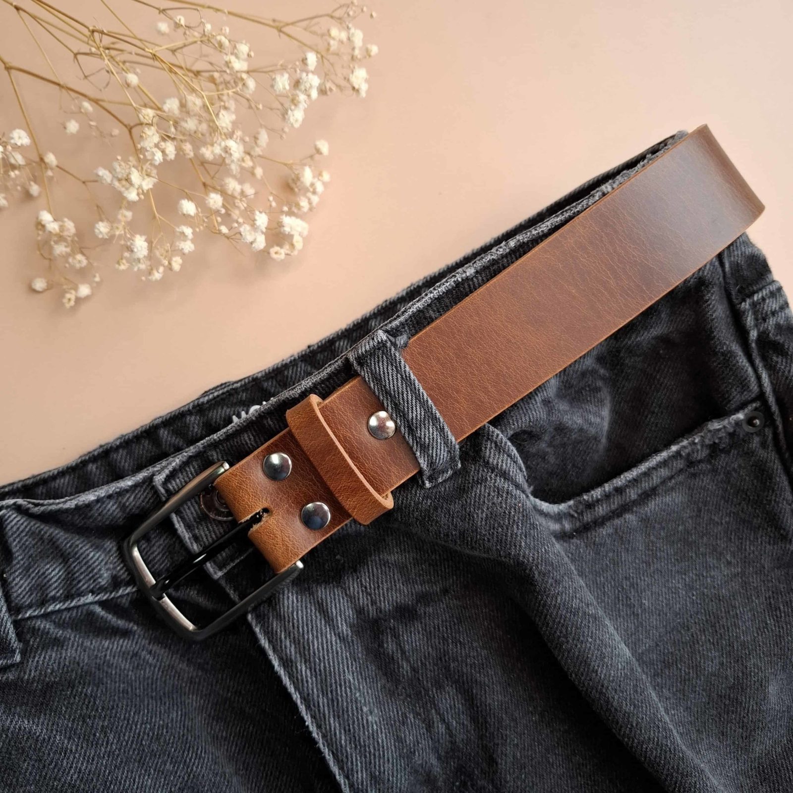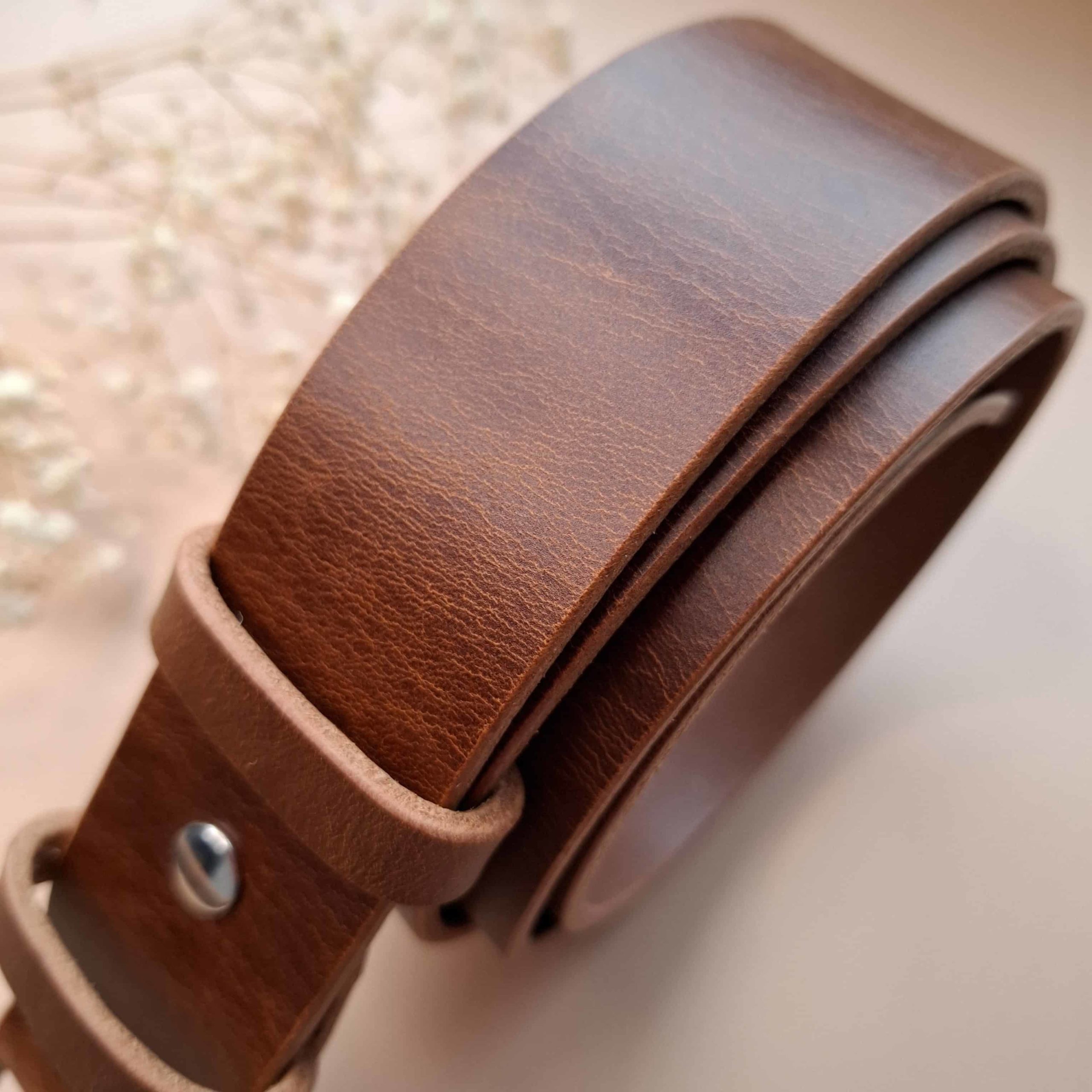 Ceinture en cuir marron pull-up fabriquée à la main en France. Un cuir qui se patine, une tenue parfaite, un basique que vous aimerez porter.