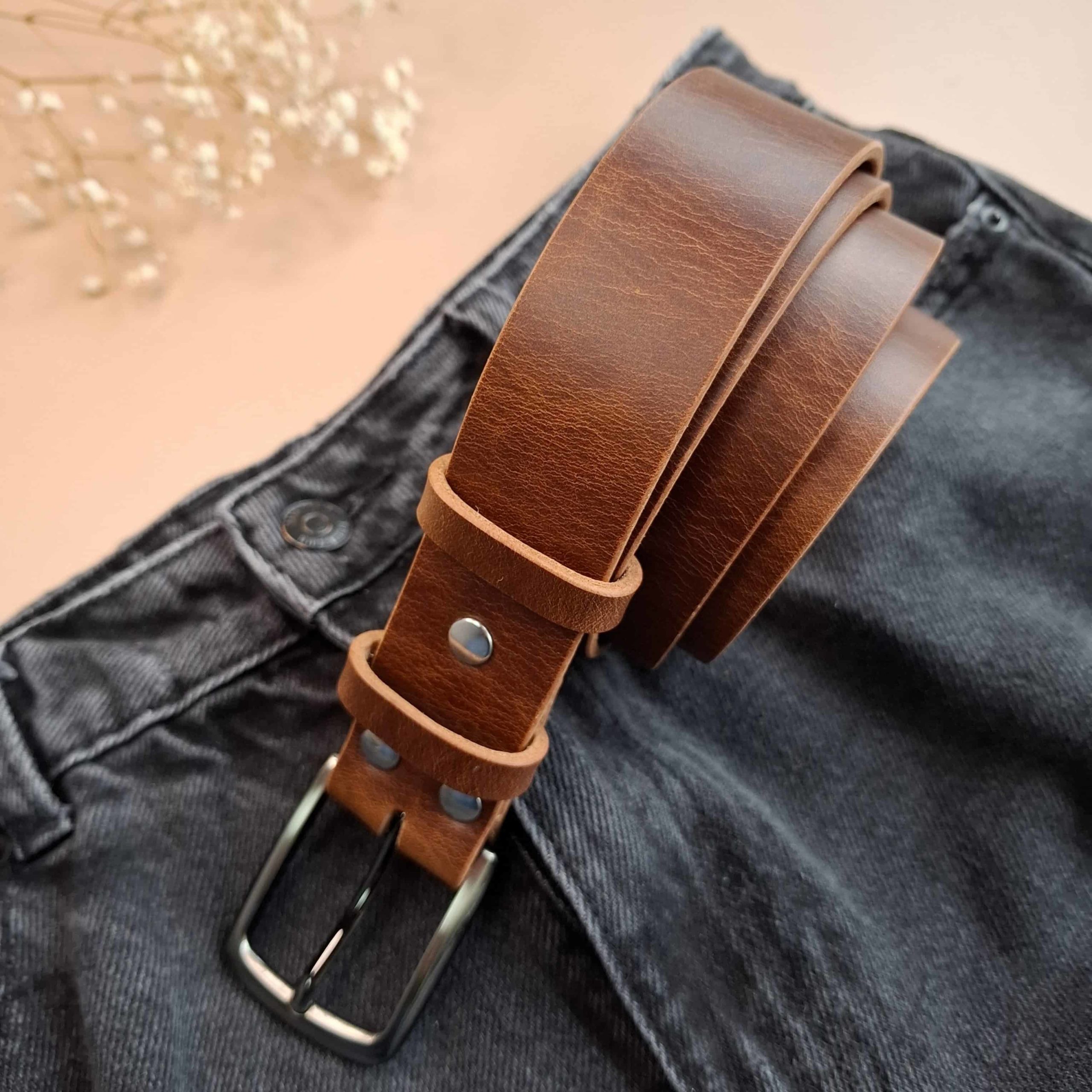 Ceinture artisanale en cuir pull-up marron – largeur 3,5 cm