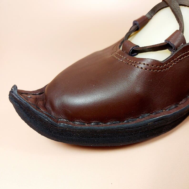 - Finition : poulaine (bout relevé et pointu, style XIIe-XIIIe siècle)