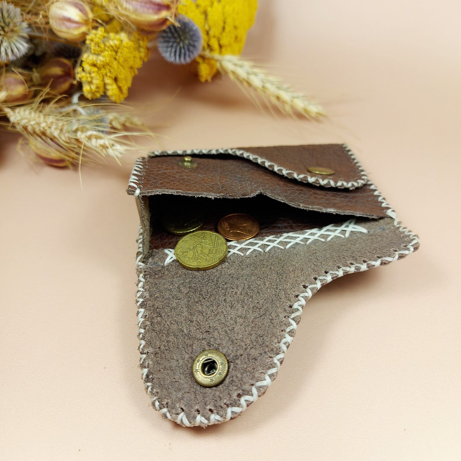 - Le côté unique ou presque de ce cuir marron grainé (porte-monnaie réalisé en 2 ou 3 exemplaires maximum)