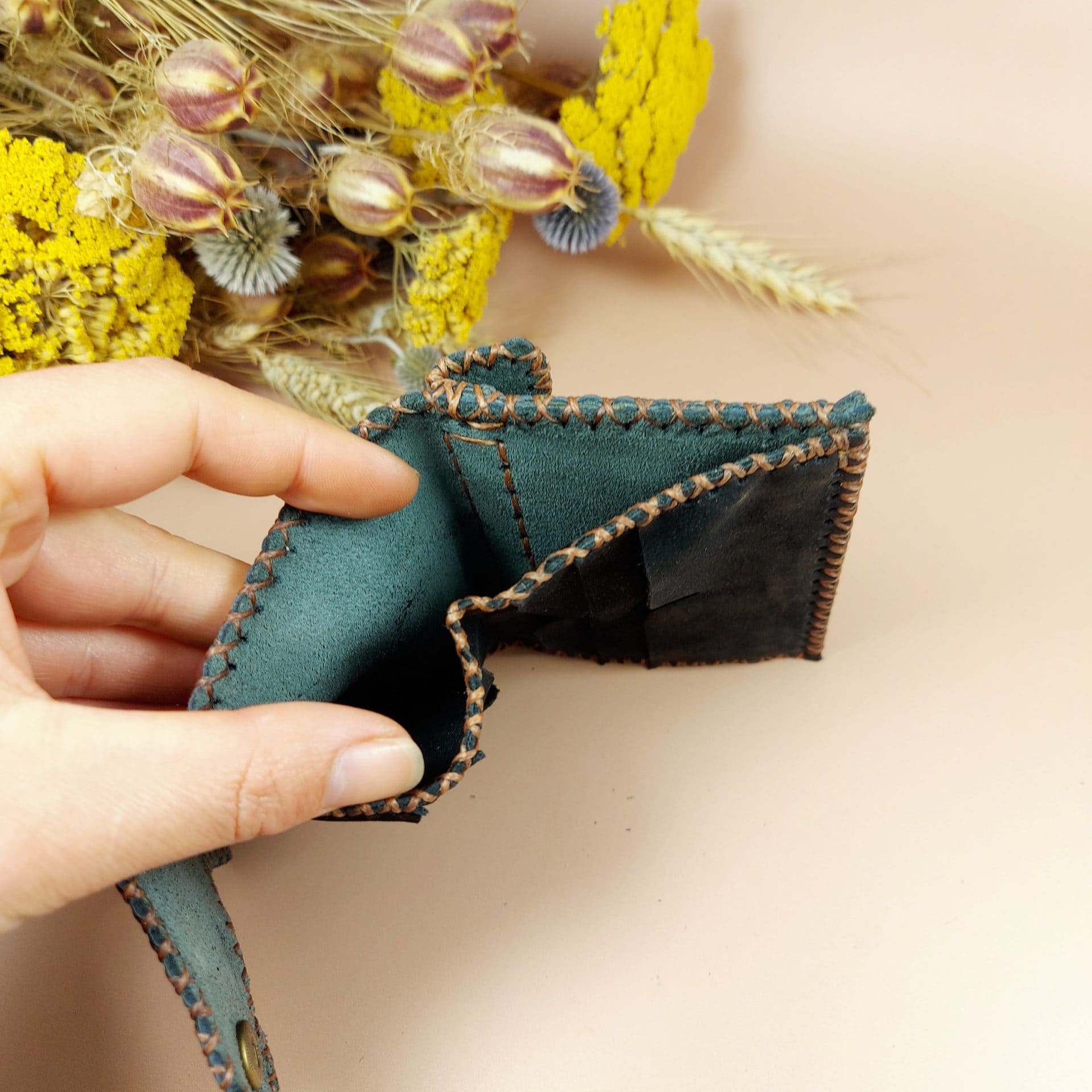 Vous avez remarqué toutes ces belles coutures? Elles ont été faites entièrement à la main...c'est d'ailleurs ce qui fait le charme et l'originalité de ce porte-monnaie. Plus de 200 petits trous dans lesquels les fils se croisent!