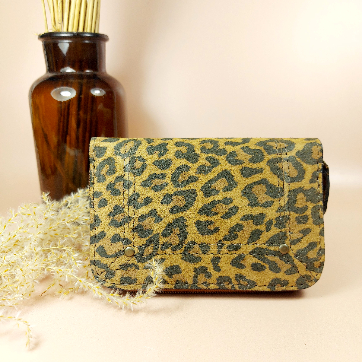 Un portefeuille en daim effet léopard pensé pour vous simplifier la vie. Élégant, compact et rempli de caractère. Pièce unique. Envoi rapide et soigné.