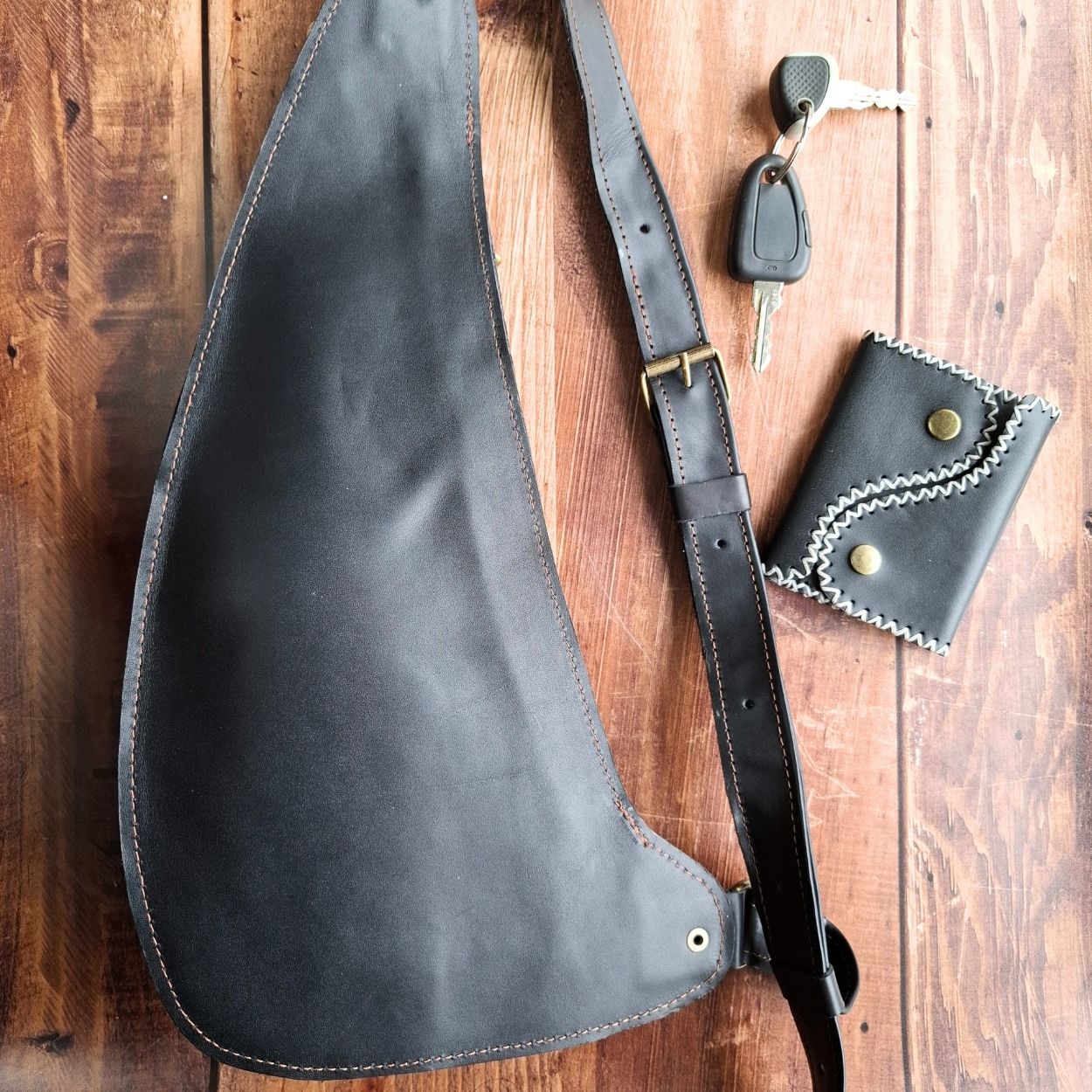 Gardez vos essentiels à portée de main avec style. Sacoche holster homme en cuir véritable, faite main, pour ceux qui veulent se libérer du superflu.