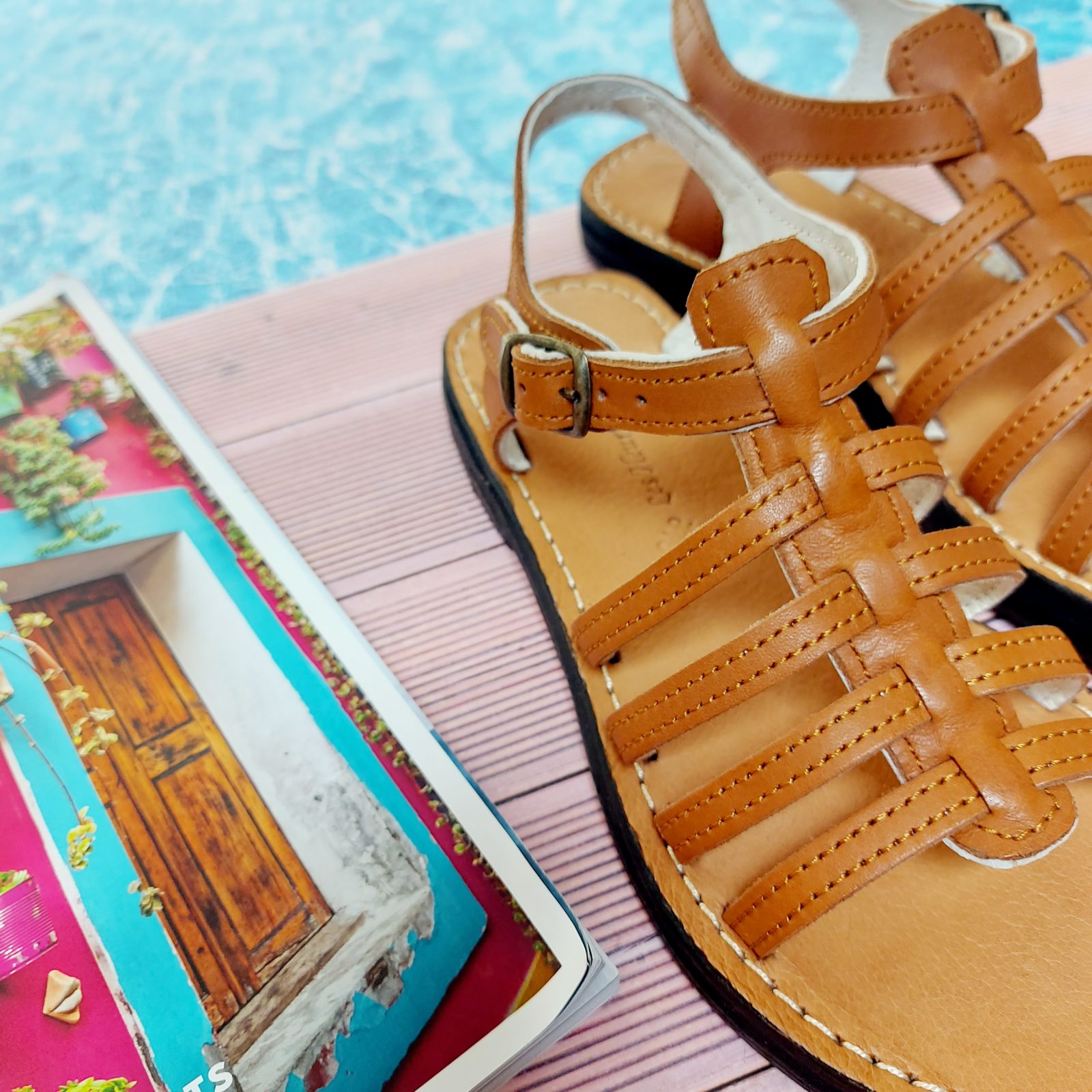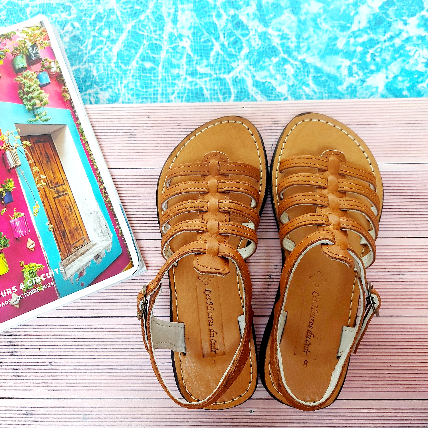 1 avis pour Sandales plates à brides en cuir camel « Carlita »